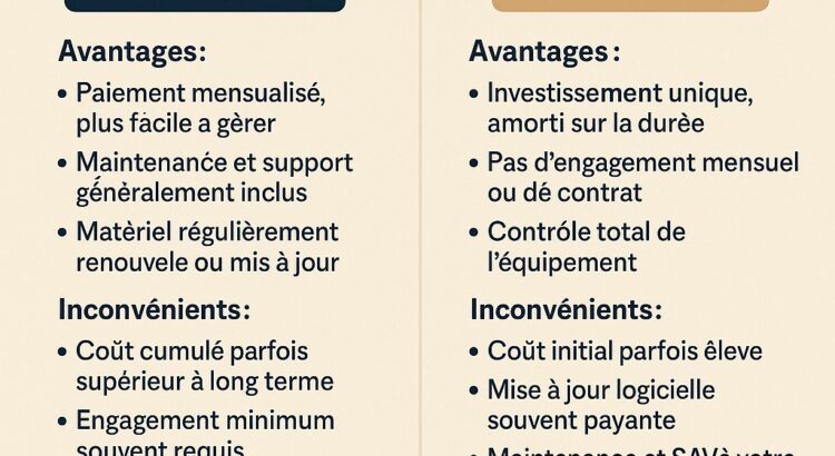 Grâce à cette option, le locataire peut décider d’acquérir le matériel, convertissant ainsi une dépense temporaire en investissement durable. Cette souplesse est particulièrement utile pour les équipements technologiques à forte valeur ajoutée.